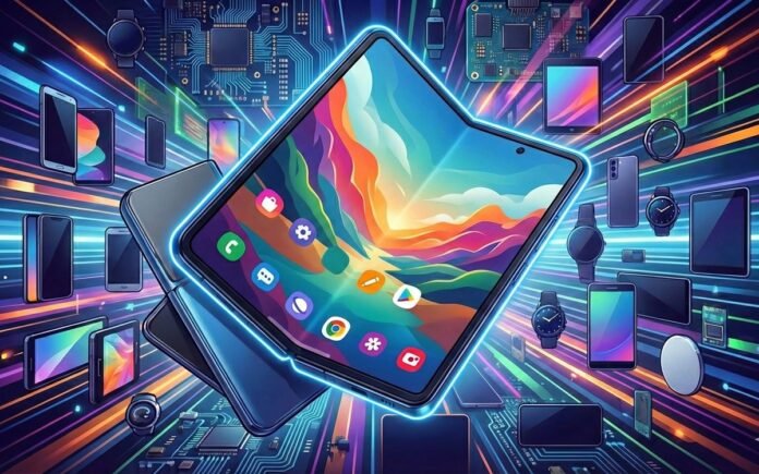 📌 Samsung Wide Fold, com foco em uma tela mais retangular e ampla.